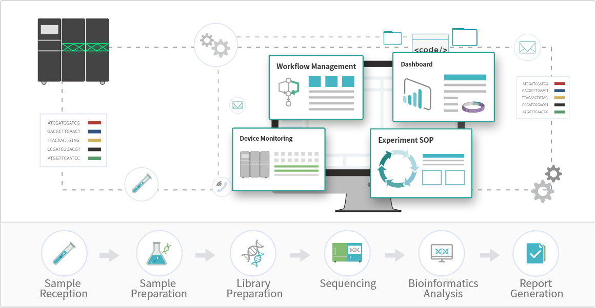 sequencers. It integrates laboratory information management system (LIMS), bioinformatics